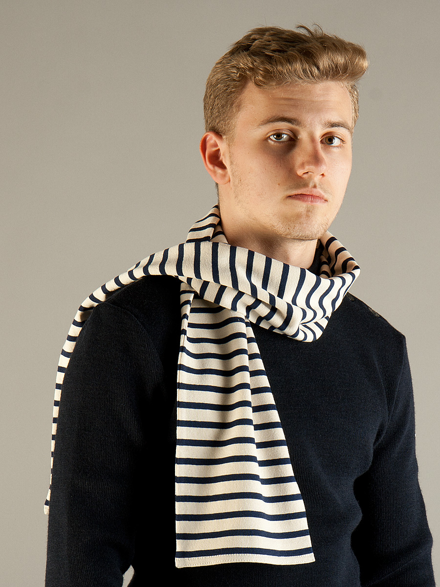 Gestreifter Schal aus robustem Baumwolljersey, doubliert verarbeitet.